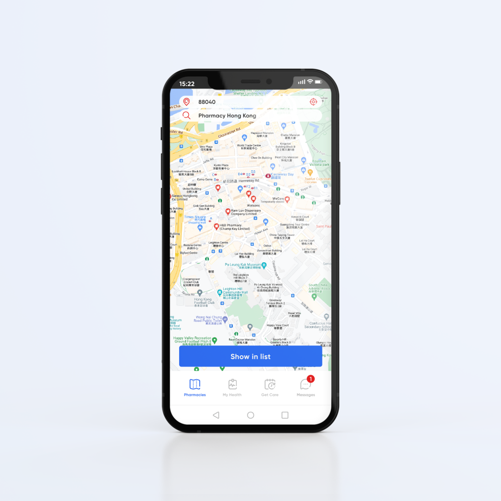 - Get access to an updated map containing the location of pharmacies, doctors and clinics any time.
